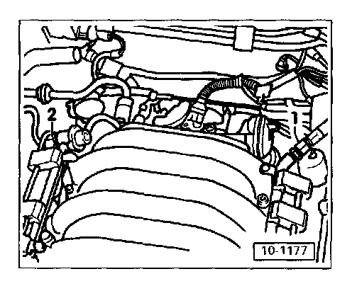 - Disconnect fuel supply line -1 and return line -2-.