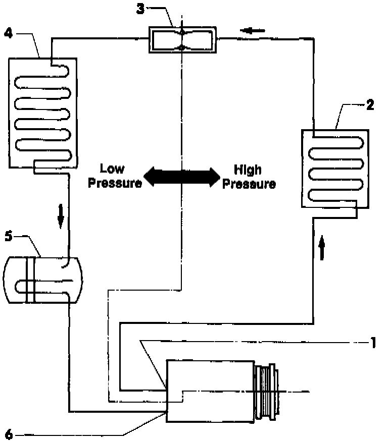 1 - Compressor, high pressure side