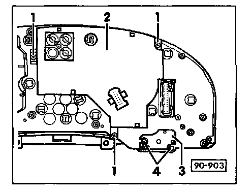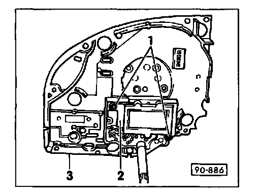 - Remove digital clock -2-from tachometer mounting plate -3-.