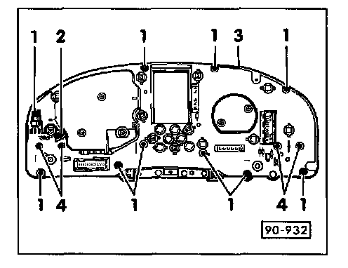 - Remove hex nuts -4- with washers and remove instrument panel light dimmer switch -3-.