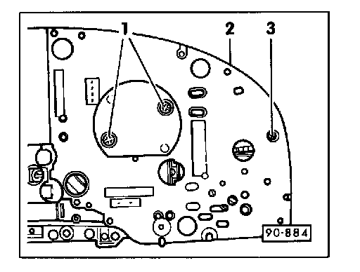 - Remove tachometer mounting plate screw -3-.