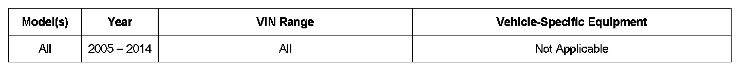 All parts and service references provided in this TSB are subject to change and/or removal. Always check with your Parts Department and service manuals for the latest information.