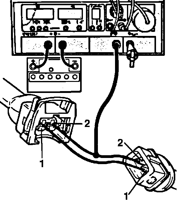 4. Using a test harness that allows the Vacuum Regulator Solenoid Valve to remain connected while testing (VAG 1594 or equivalent) connect VAG 1367 tester (or a suitable duty cycle meter) to the connectors as shown.