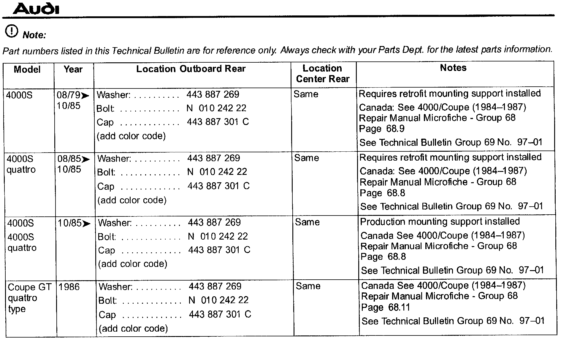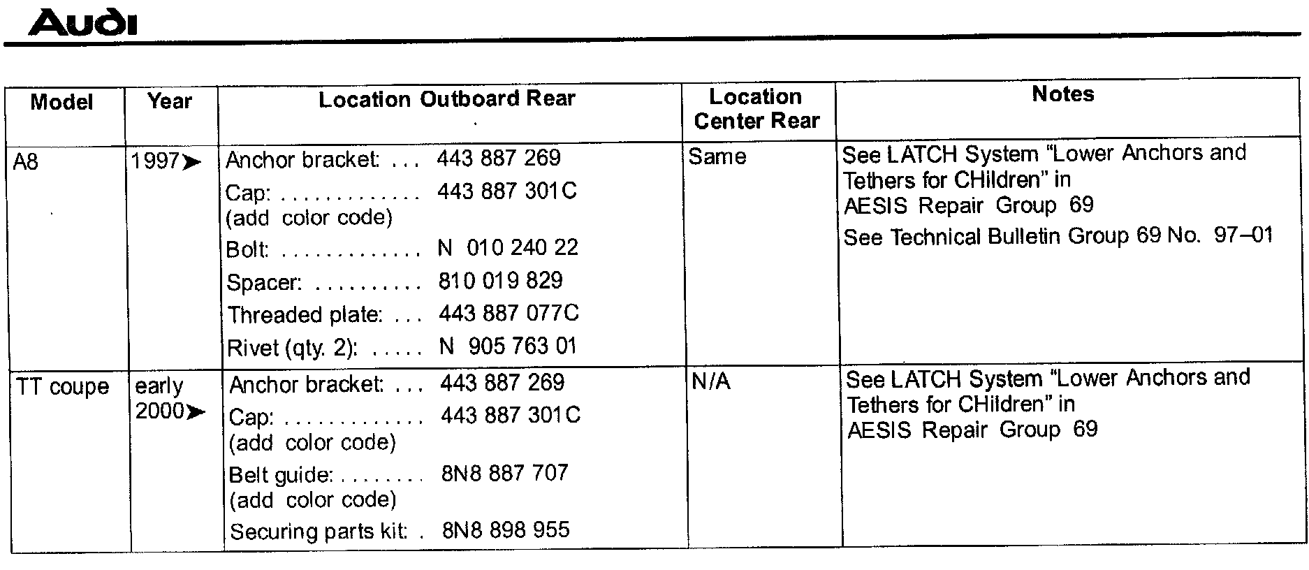 ^ Can be retrofitted beginning m.y 1999 except, A8L (long wheel base) and TT (see table)