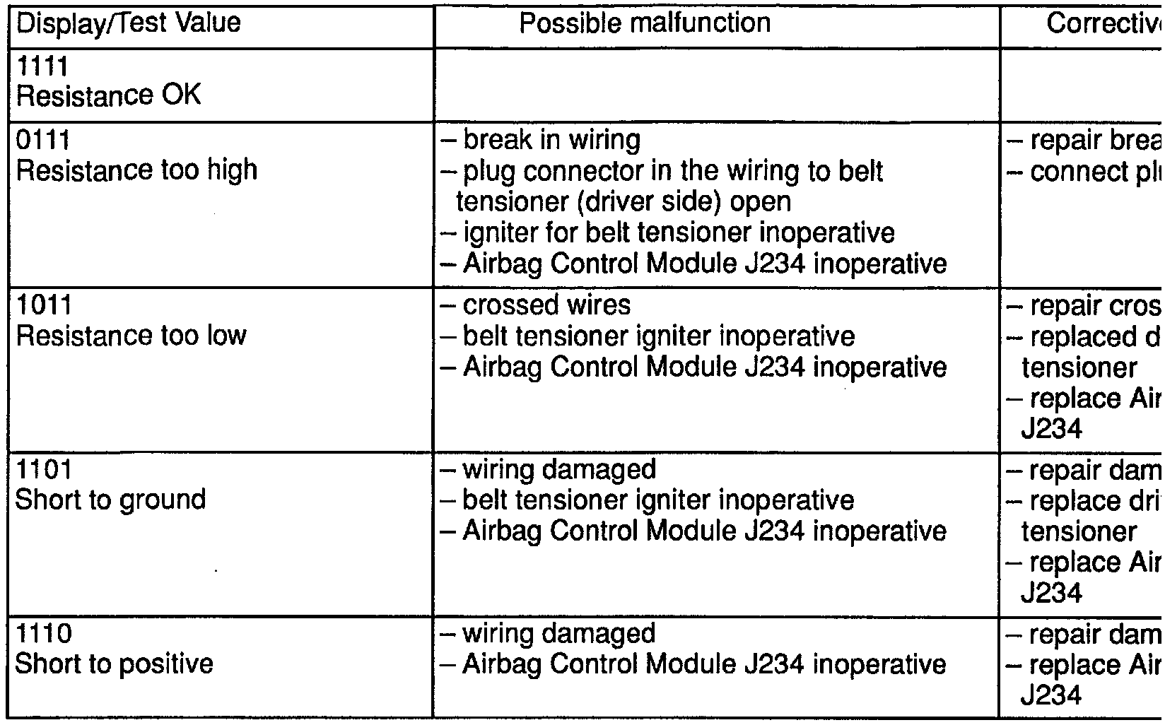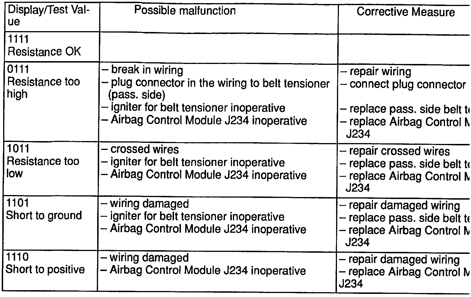 x��Passenger Side Belt Tensioner Test Table: