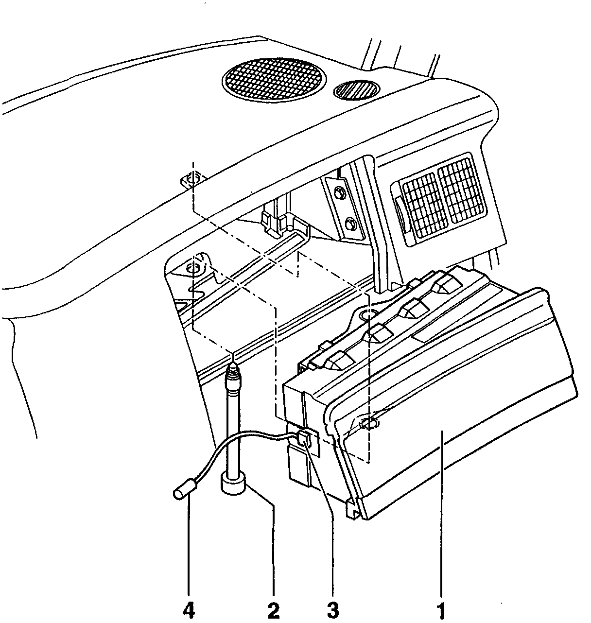 ^ Ensure that cable (4) is not clamped between the instrument panel and airbag. If necessary, tape the cable to the airbag prior to installation