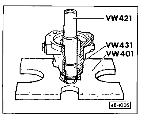 Place special tool VW421 onto special tool VW431 and drive seal in fully.