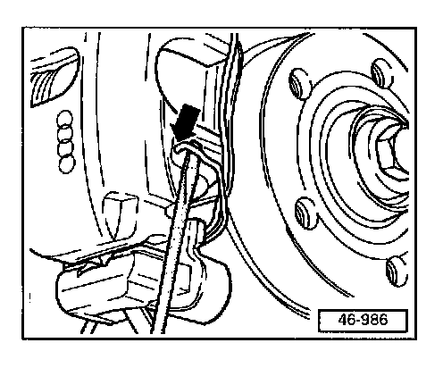 Secure the brake caliper with a piece of wire in order to relieve the stress on the brake hose.