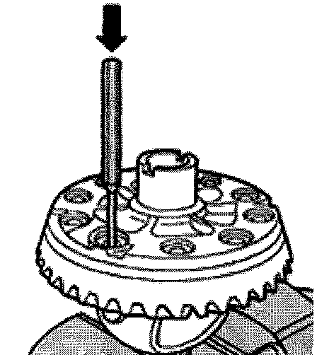 - Align thrust washer and planet wheels. Install shaft and spring pin.