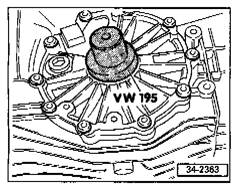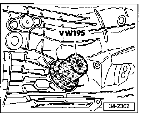 - Drive in right-hand oil seal with VW 195 to 5.5 mm (0.217 in.) below surface of transmission housing.