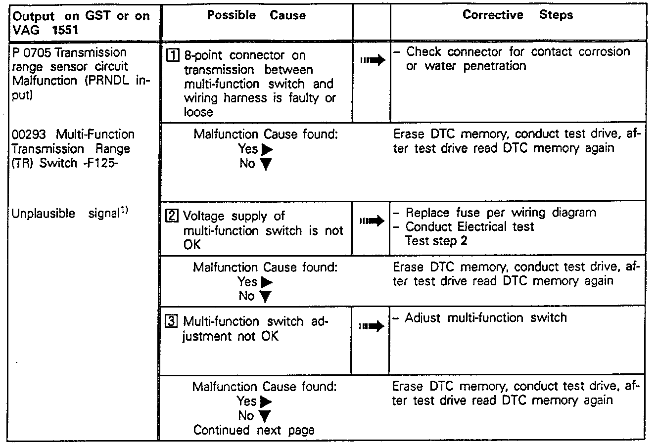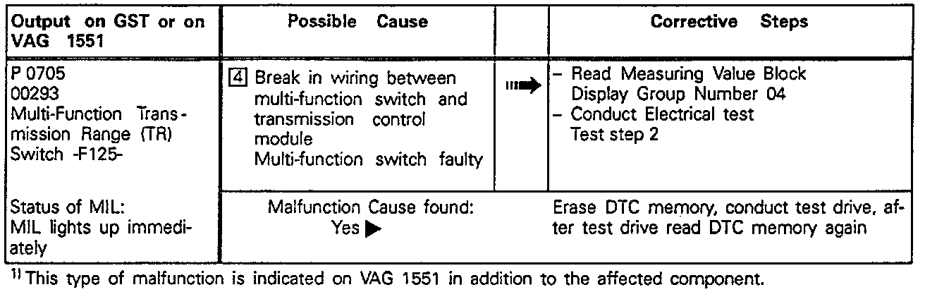 Trouble Code Chart: