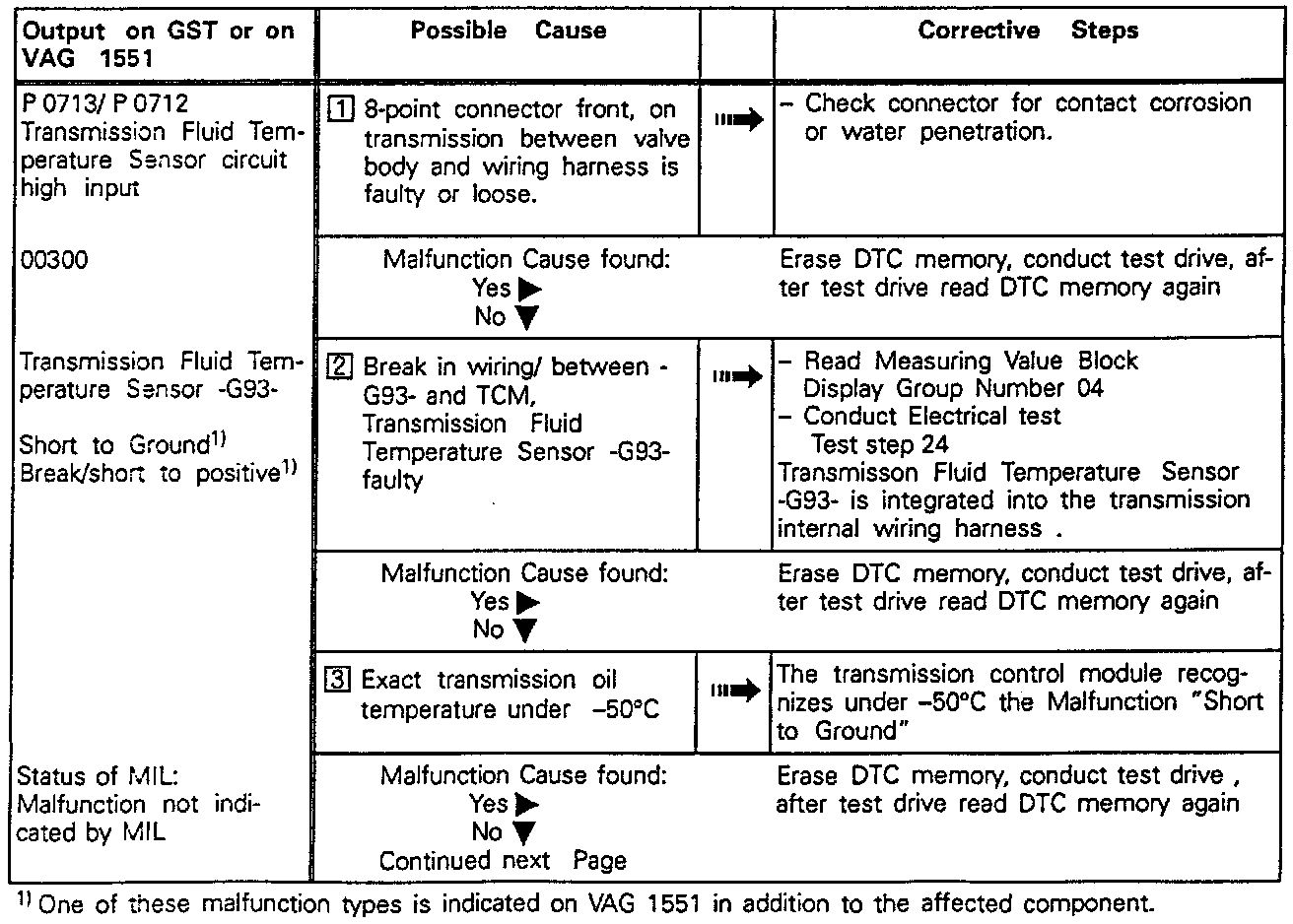 Trouble Code Chart: