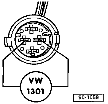 - Using jumper wires, connect tester VW 1301 to fuel level sensor connector as shown.