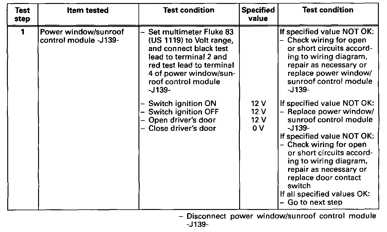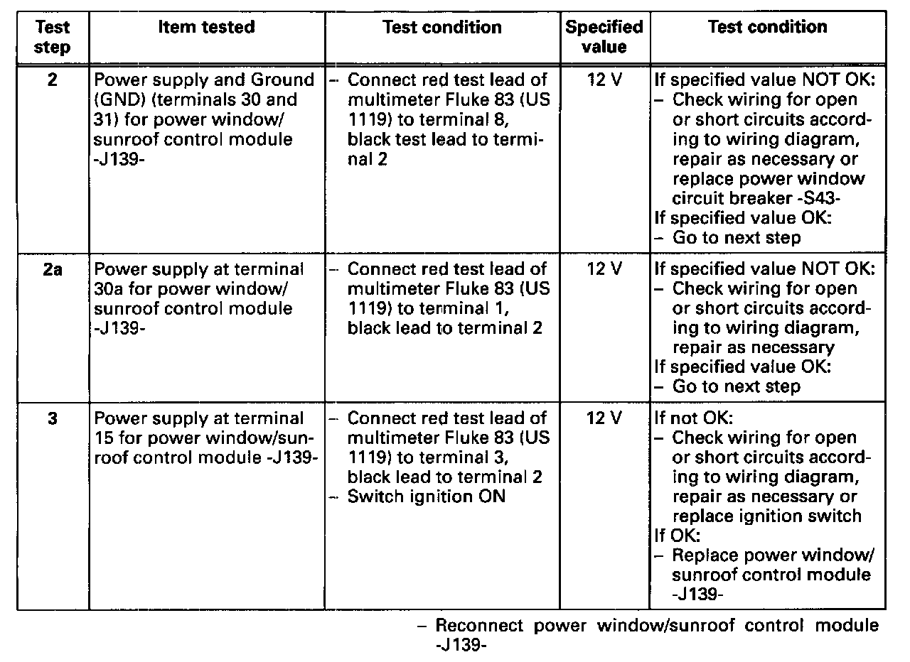Power Window/Sunroof Control Module, Checking