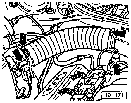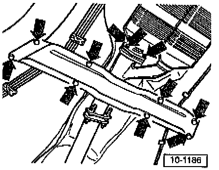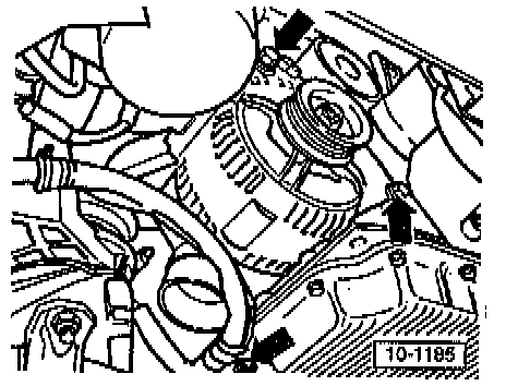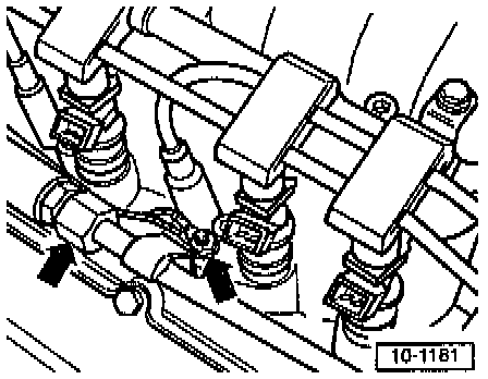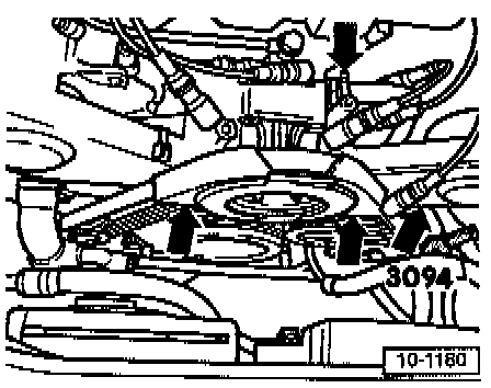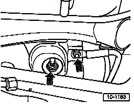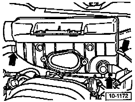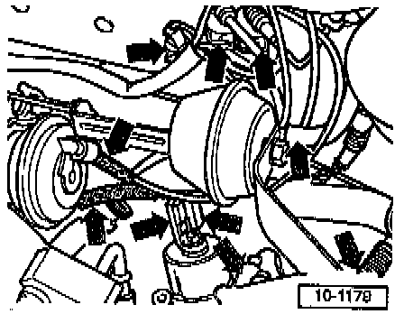 59. Remove front engine support from side member (arrows) (partially loosen applicable inner fender liner).