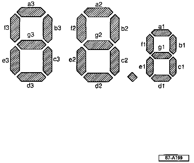 1) Segments -g1-, -g2- and -g3- must illuminate simultaneously to indicate system function is OK.