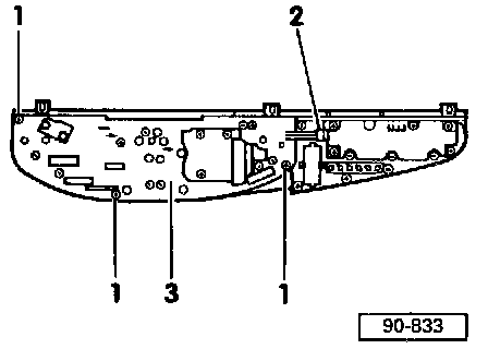 - Remove instrument cluster.- Remove screws -1-, -2- and -3-.