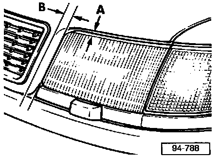 - After headlight assembly is installed, check hood-to-head- light lens dimension -A-.
