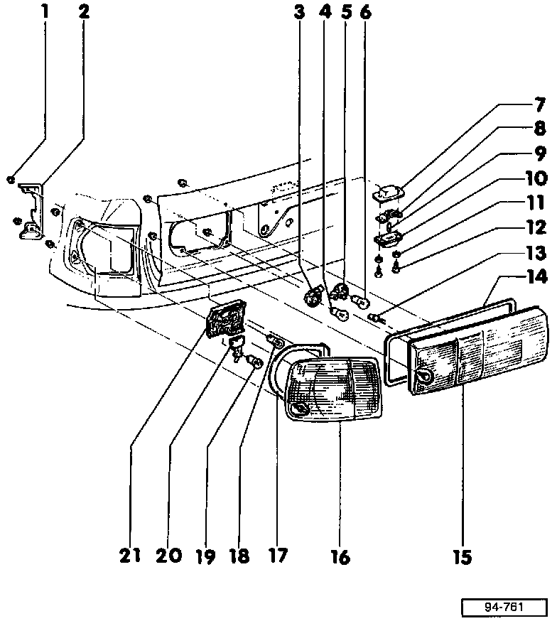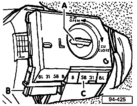 NOTE: The switch for luggage compartment light is located in tailgate lock. Luggage compartment bulb: 12 volts, 5 watts.