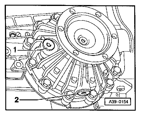 Remove oil drain plug (arrow -2-) and drain gear oil.