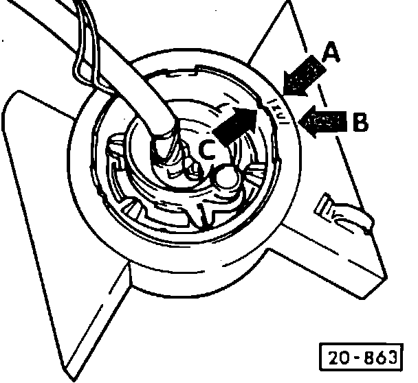 - Insert pump into tank housing with notch "C" lined up with mark "A" (see illustration).