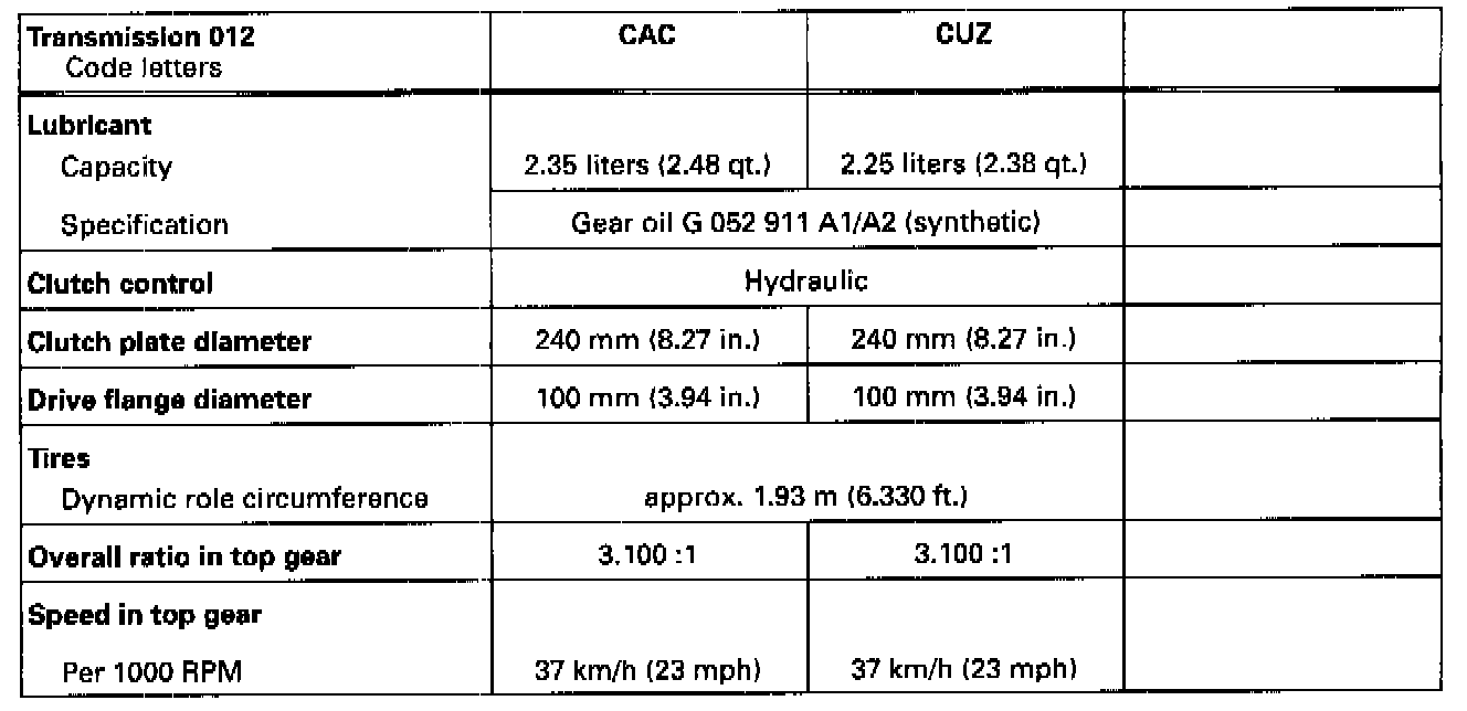 Code Letters, Engine/Transmission Applications, Ratios, Capacities I: