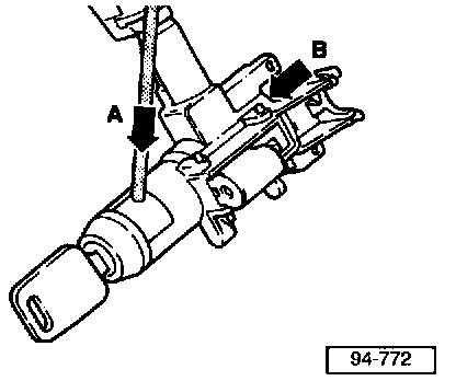 - Push down retaining spring through hole (arrow -A-) using a punch or similar tool.