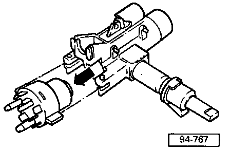 Ignition and Starter Switch, Removing and Installing- Remove steering wheel and steering column switches.