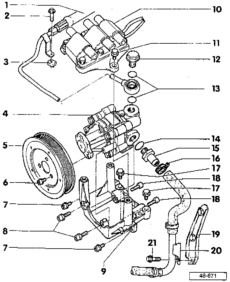 To remove pump, remove bolt/washer assemblies -7- and bolt/washer assemblies -17- so pump can be removed together with bracket