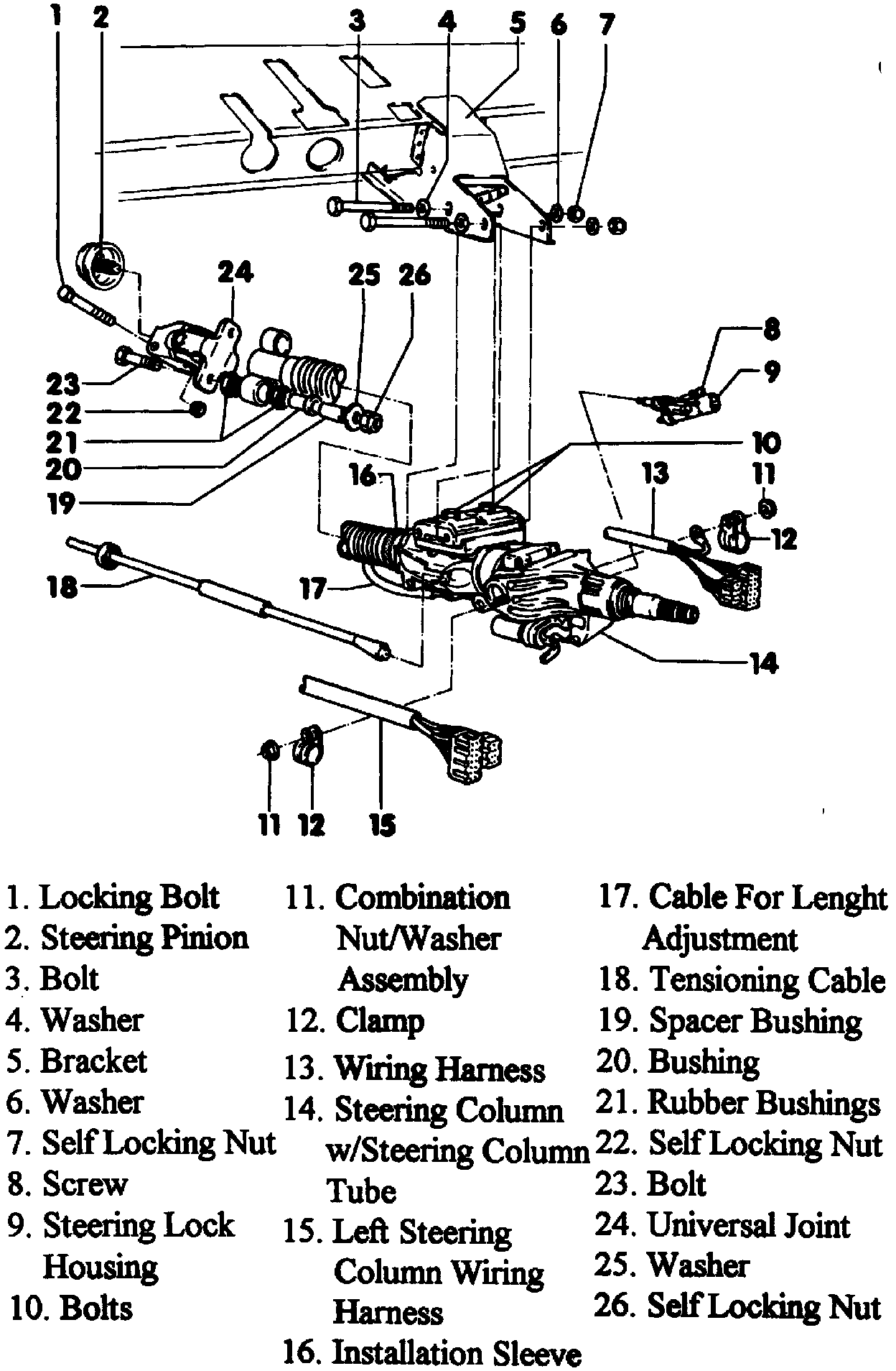 10. Torque steering column tube to bracket bolts to 26 ft. lbs.