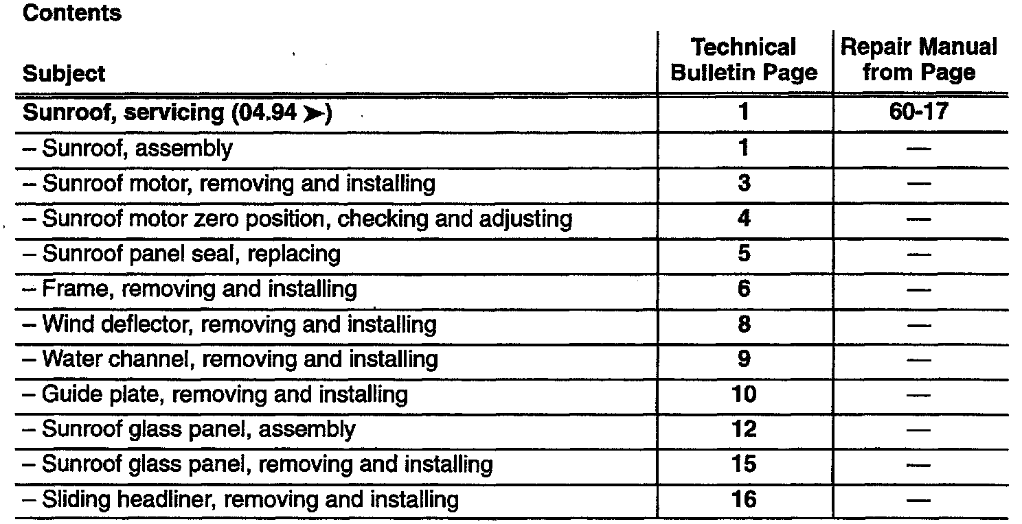 Sunroof - Servicing