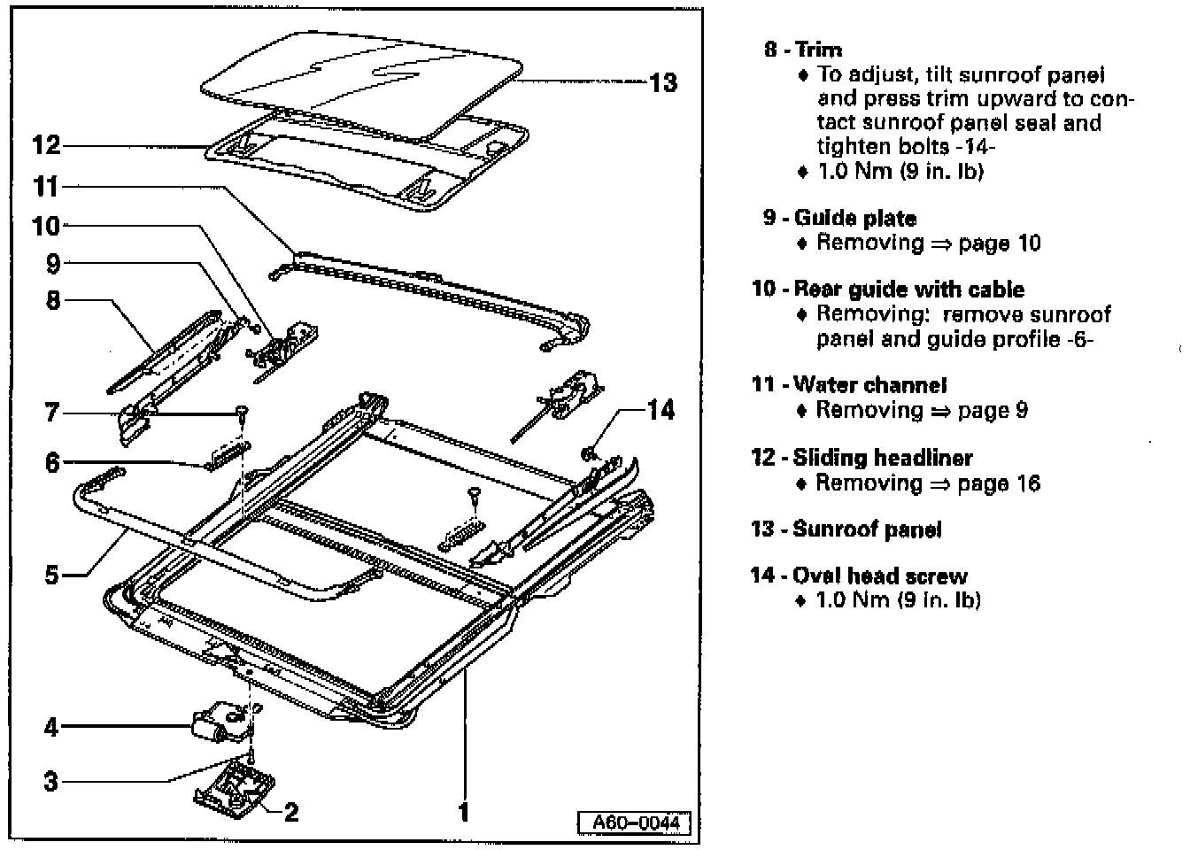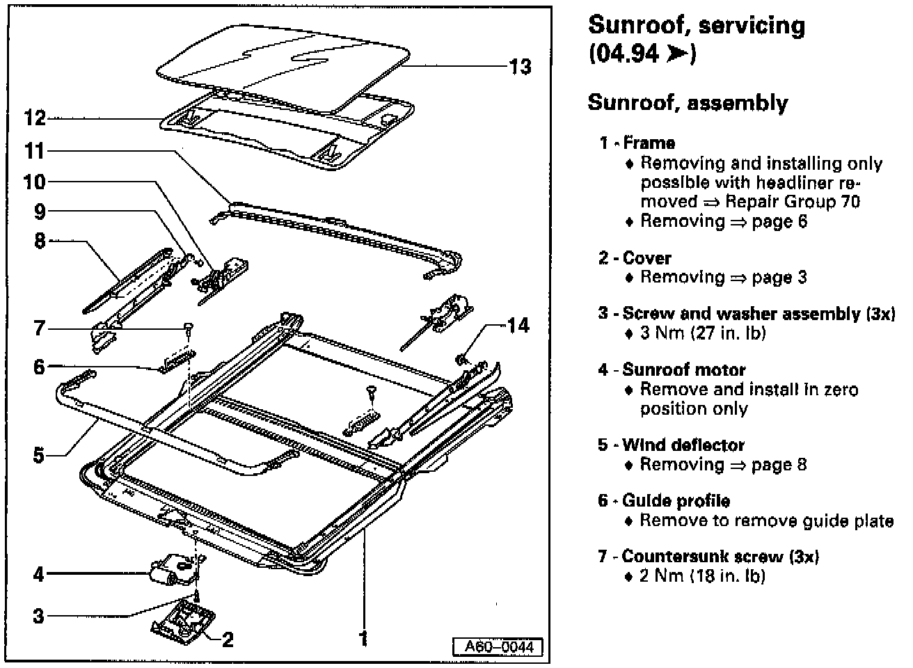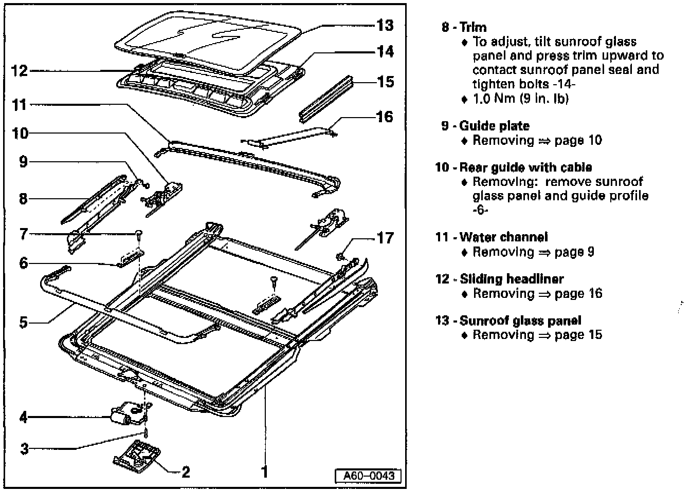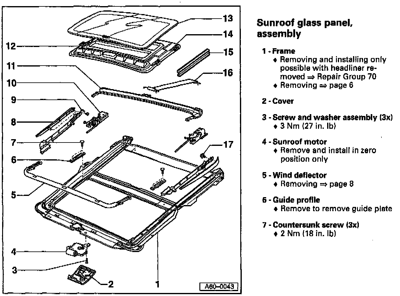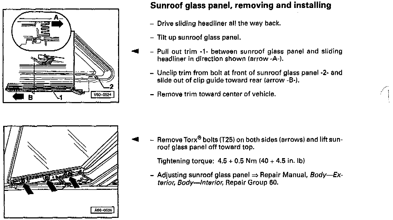 Sunroof glass panel, removing and installing