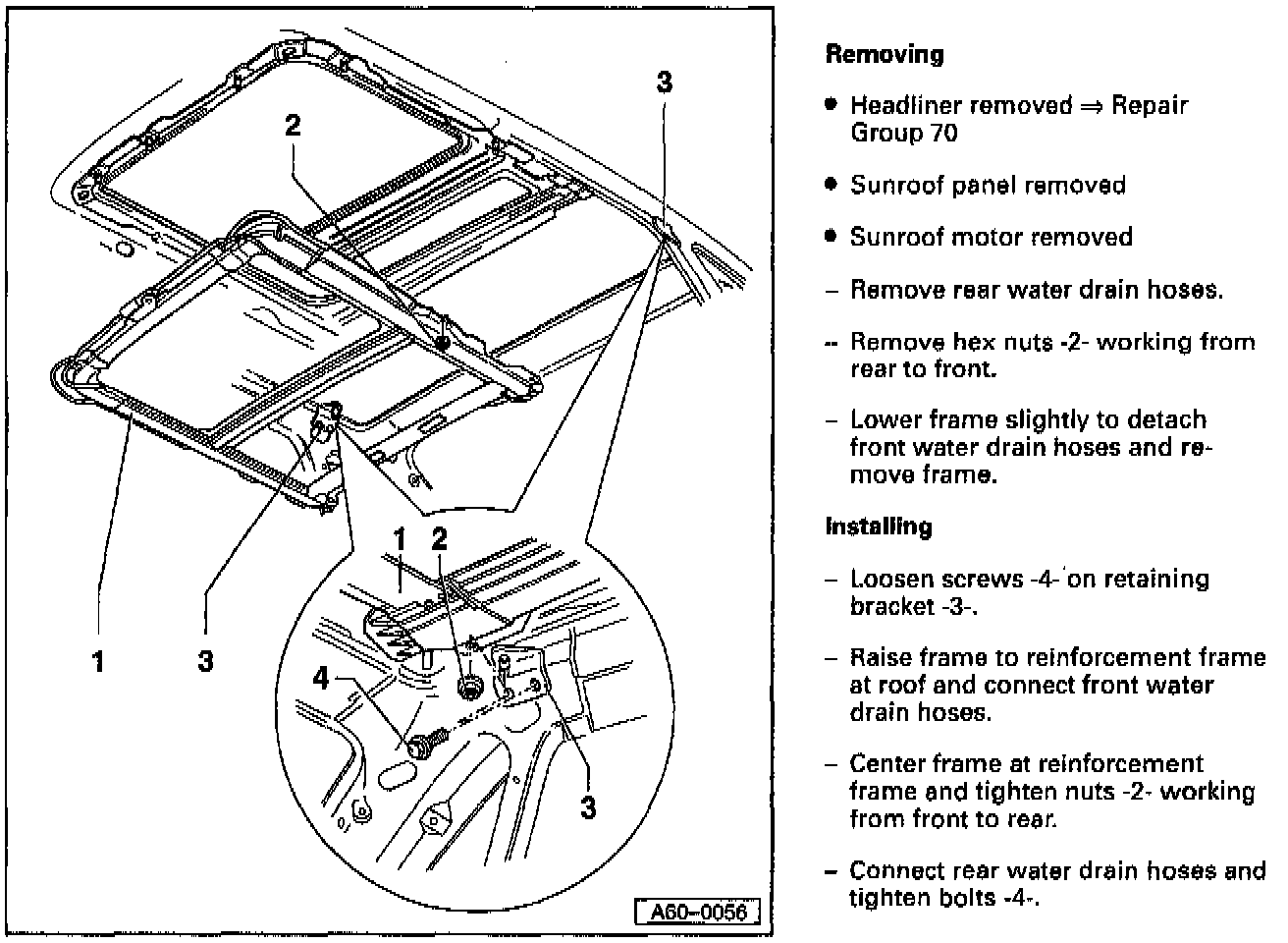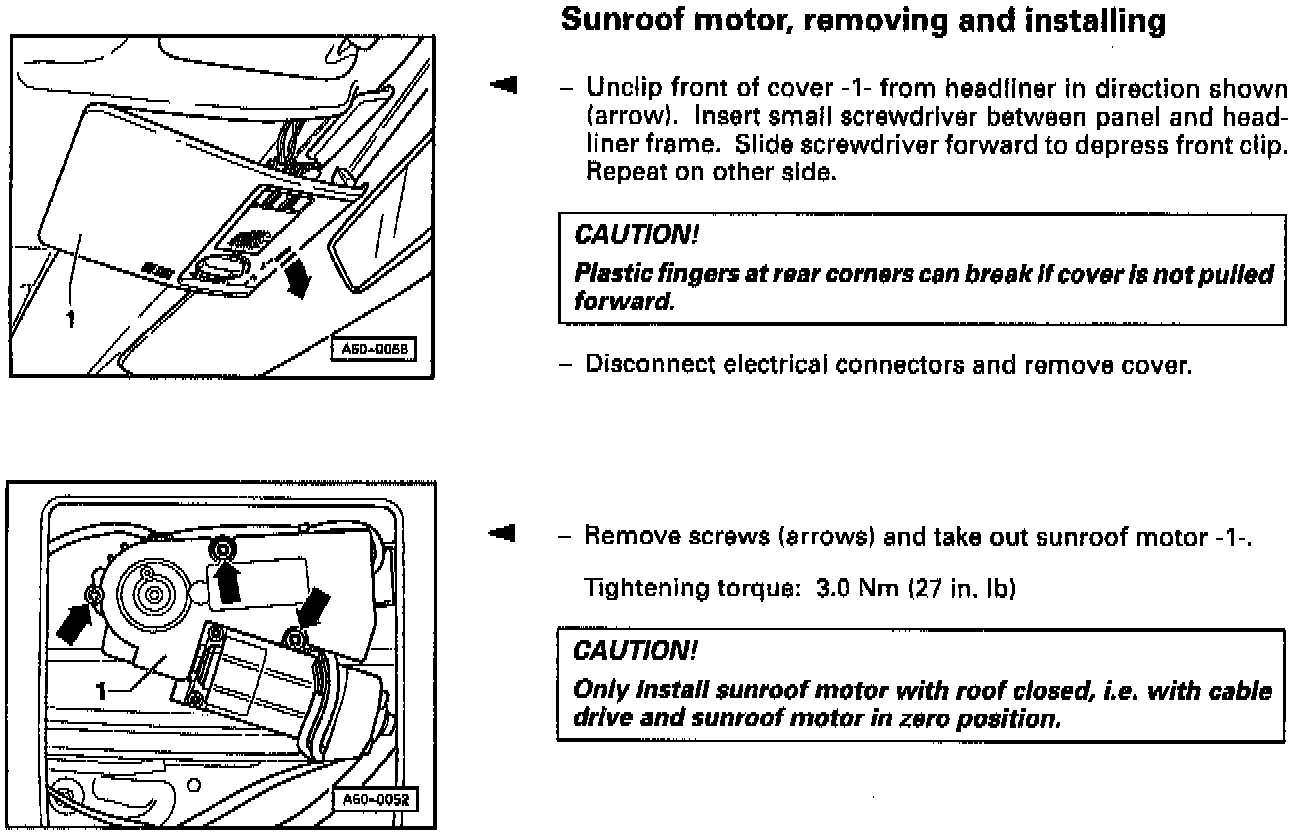 Sunroof motor, removing and installing