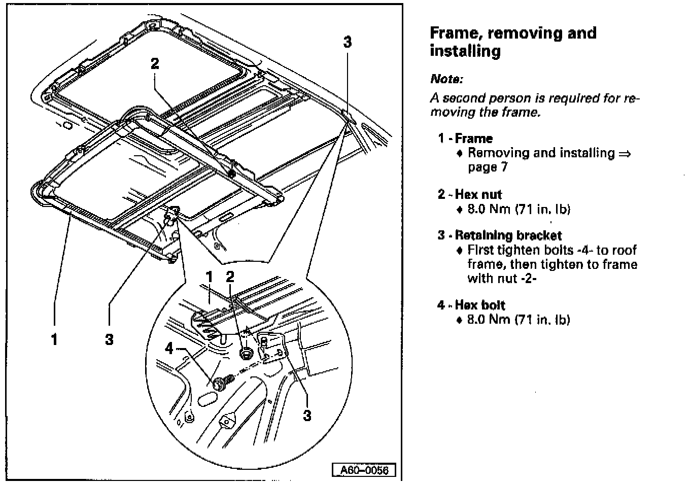 Frame, removing and installing