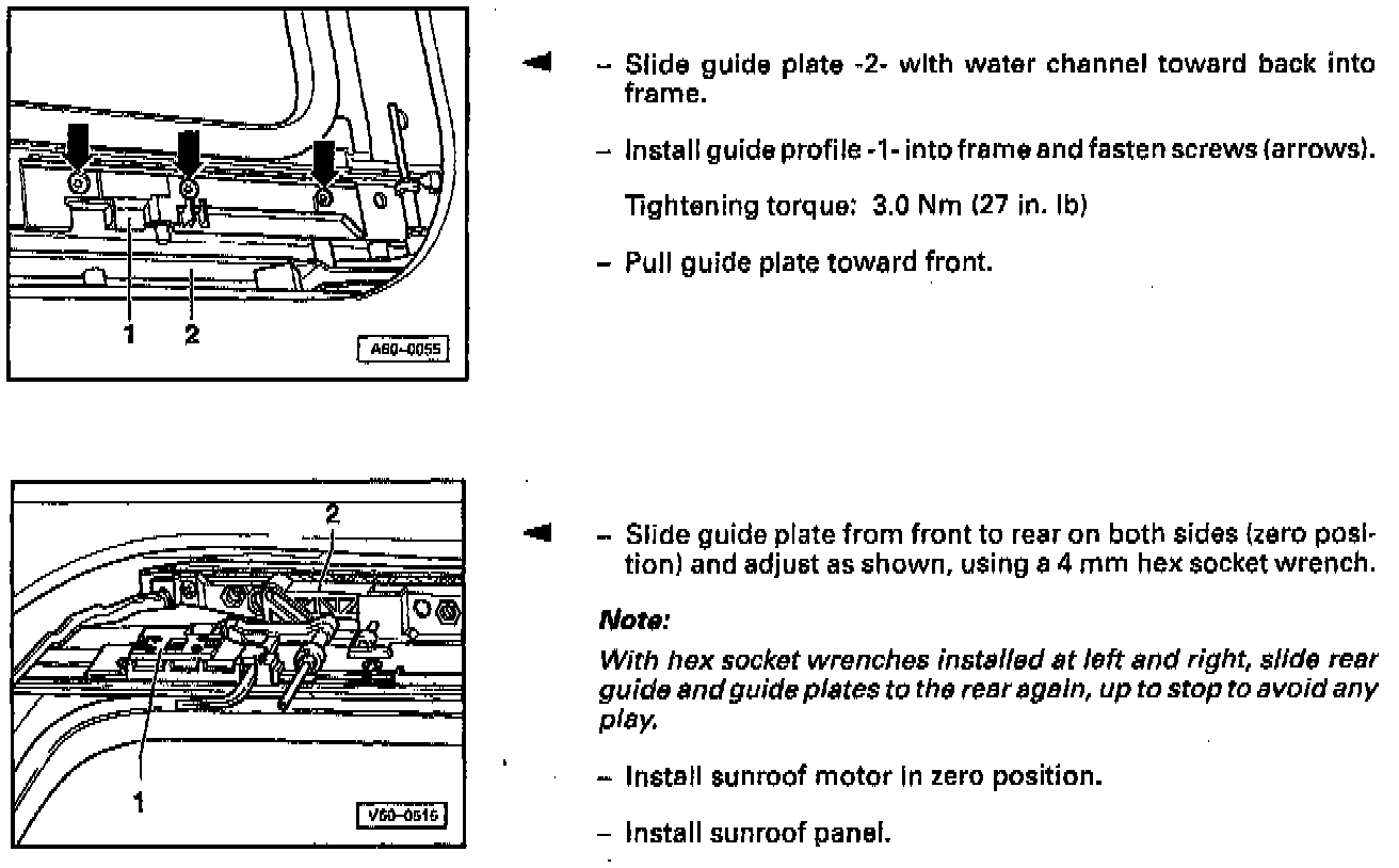 Sunroof motor zero position, checking and adjusting