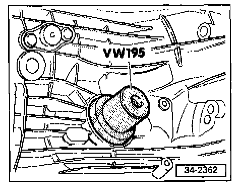 - Drive in right-side oil seal using VW 195 until seal is 5.5 mm (0.217 in.) below surface of transmission housing.