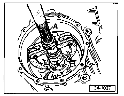 - Press old circlip out of groove in drive flange shaft using new circlip -A-.