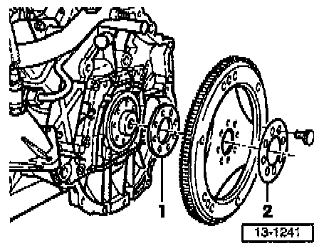 2. Mark bolt hole pattern of drive plate and washers -1- and -2- relative to crankshaft.
