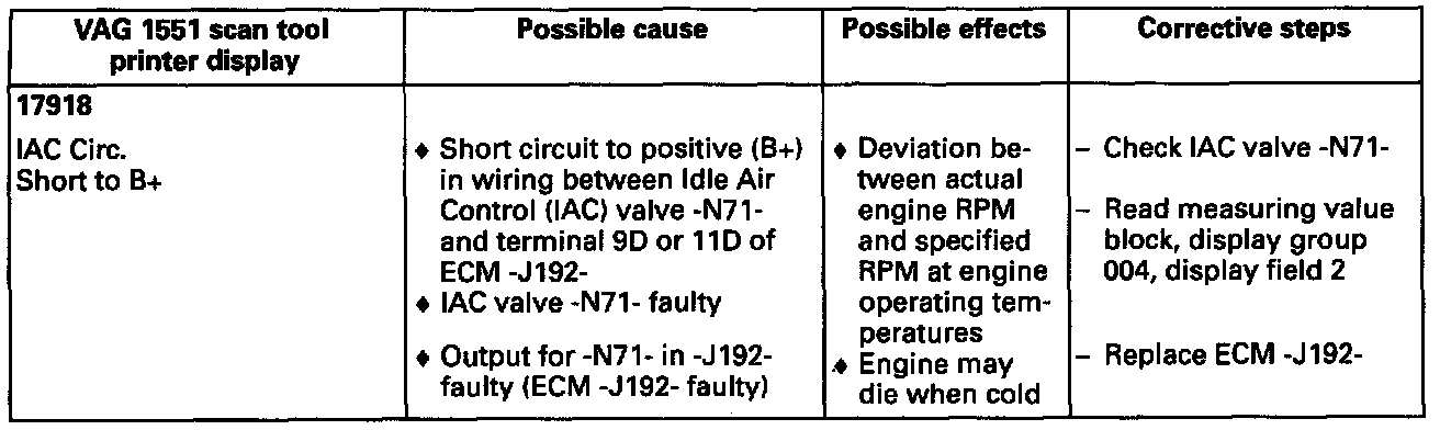 When a malfunction is recognized in the electrical circuit, both final output stages ("+" and "-" output) are switched OFF. IAC valve -N77- has no current and the limp home mode is initiated.