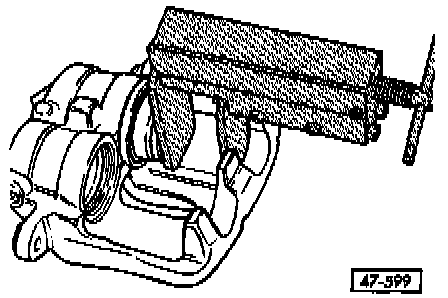 Place wooden board into the recess of the caliper housing to catch the pistons so that they are not damaged - Fig. 1.