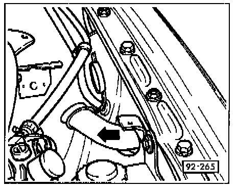 - Pull filler neck outward (arrow) and remove from washer fluid reservoir.