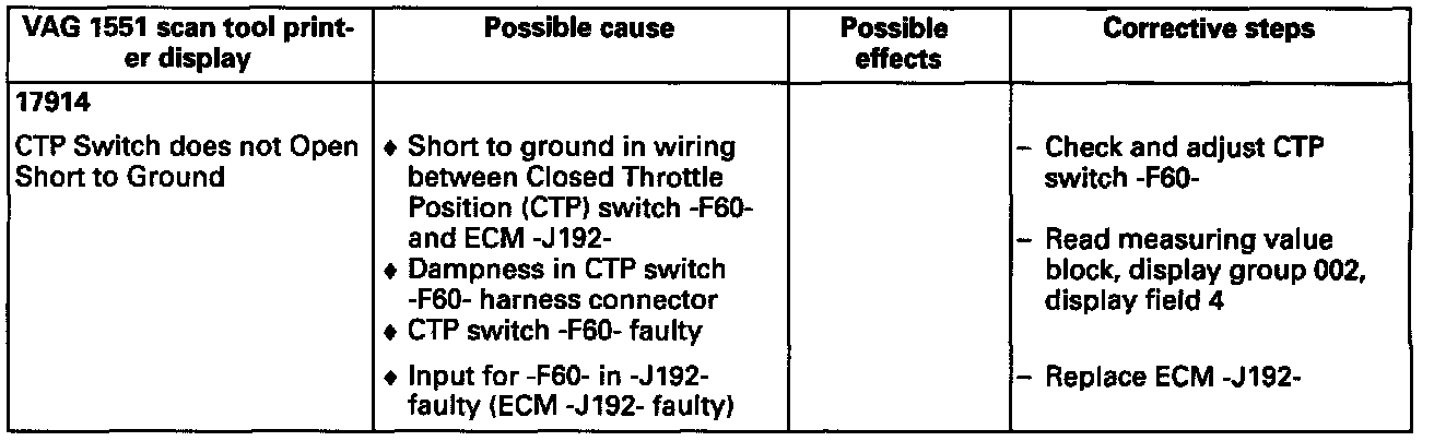 ^ DTC "17914" is stored as soon as the throttle opening is greater than 7° and the closed throttle position switch is closed for longer than one second.