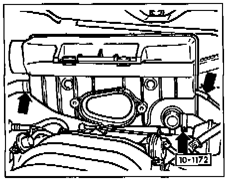 - Remove both crankcase breathers and remove vacuum hose (arrows).
