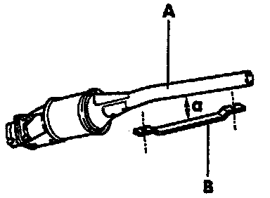 - Make sure that dimensions -a- from three way catalytic converter -A- to chassis -B- are uniform.