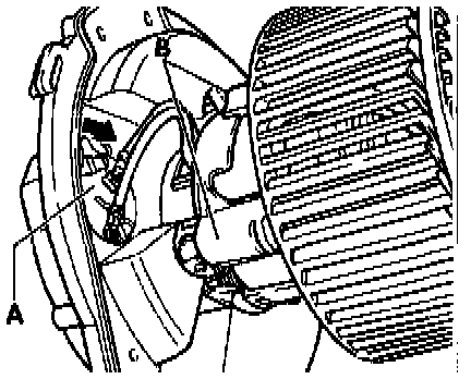- Disengage three rubber bushings -B-. (Fig. A)