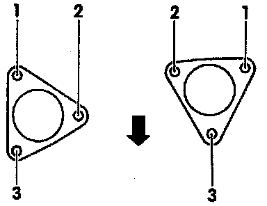 - Tighten both front exhaust pipes to exhaust manifolds simultaneously following sequence shown.