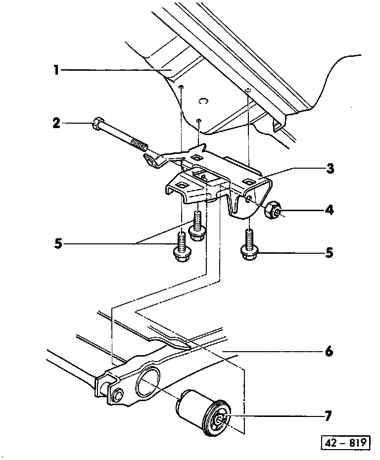- Tighten mounting bolts on both rear beam axle bearing mounts to specified torque.