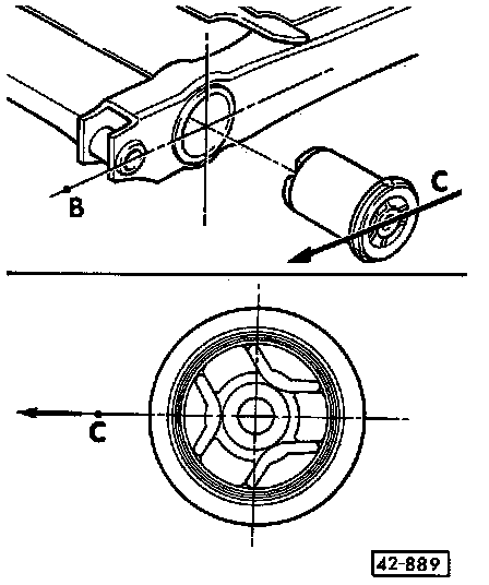 - Check distance of rear axle to both wheelhousings and align in transverse direction, refer to Fig. 5, below.