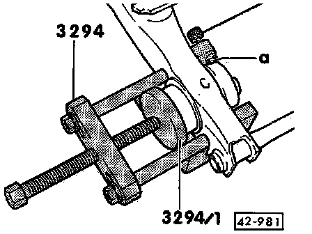- When bearing is pressed in, pin (a in illustration) must make contact with metal bearing housing, refer to Fig 4, below.