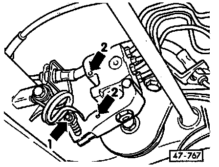 - Tighten nut (1 in illustration) to 20 Nm (15 ft lb).